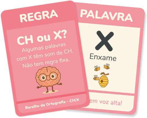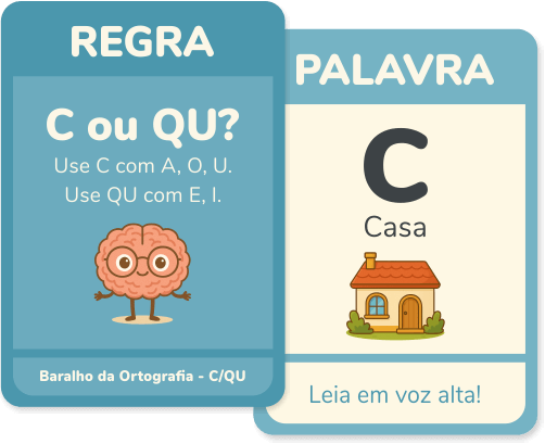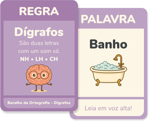 Um conjunto digital com 50 cartas ilustradas, criado especialmente para ajudar alunos do Fundamental 1 a compreender e aplicar regras ortográficas de forma clara, concreta e divertida.